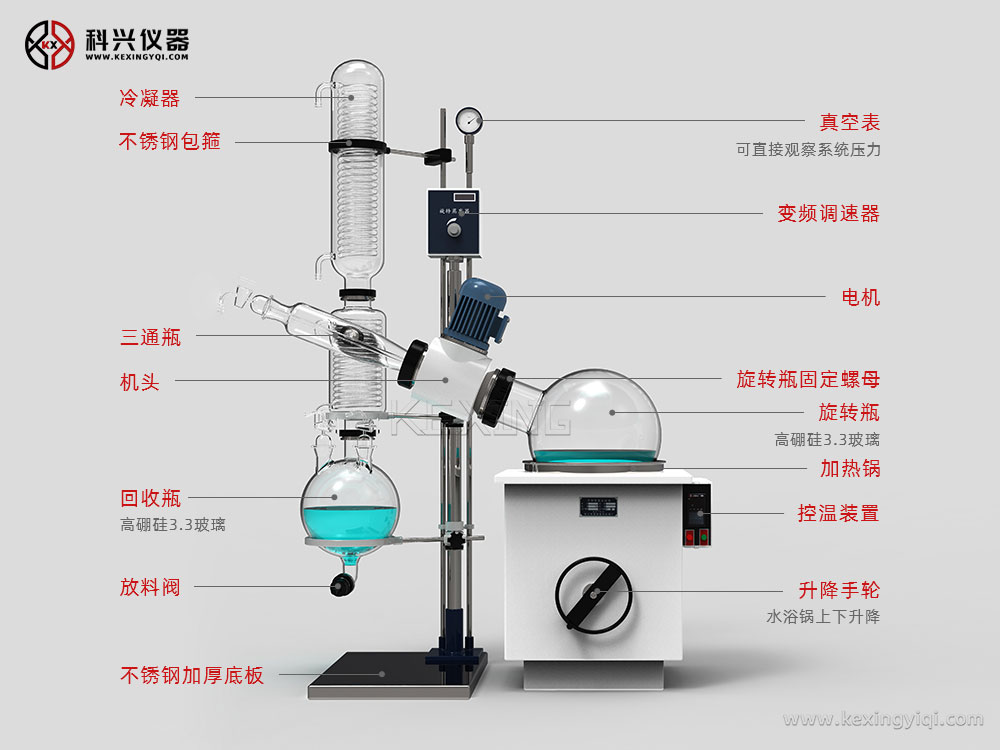 大型旋转蒸发仪用途特点:大容量、大口径旋转蒸发瓶,蒸发面积大,减压置于水浴中,边旋转边加热,使溶液高效扩散蒸发,可用于生物、医药、化工、食品等领域的小试、中试。产品可与循环水式多用真空泵、隔膜真空泵、低温循环(真空)泵、循环冷却器、恒温循环器、低温冷却液循环泵等配套组成装置。